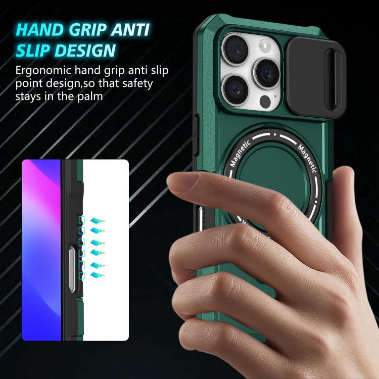 Funda Híbrida TPU y PC con Soporte Magsafe y Protección para iPhone 16 Pro Max (Verde Oscuro)