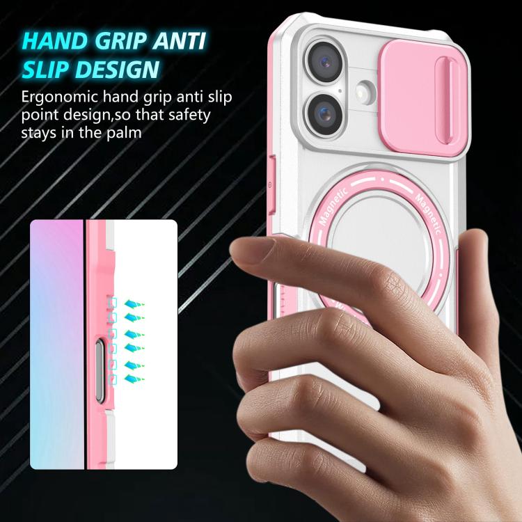 Funda híbrida TPU y PC con Soporte Magsafe y Protección para iPhone 16 (Rosa y Blanco)