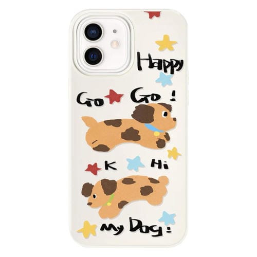 Funda híbrida TPU y PC iPhone 12 Perro Feliz función protección (Blanco)