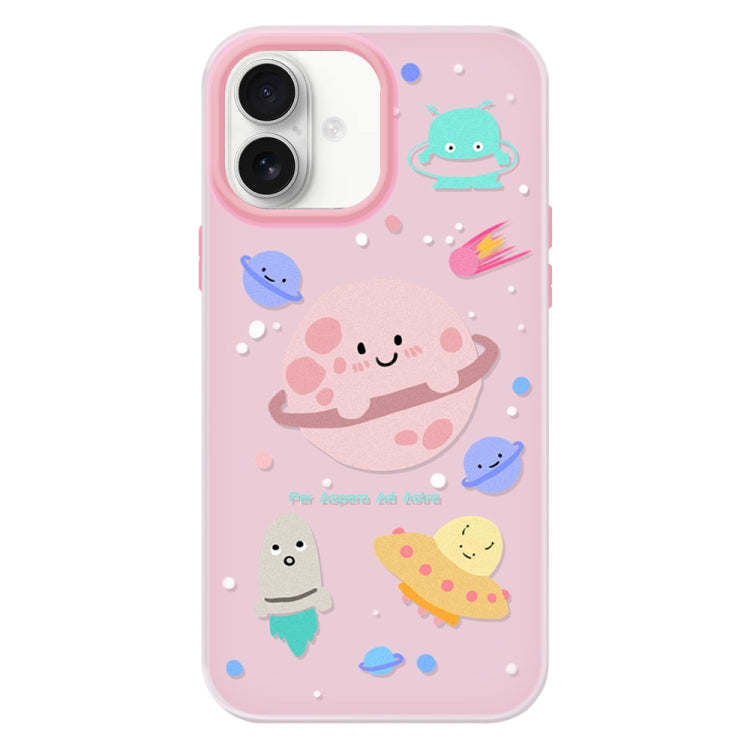 Funda híbrida TPU y Policarbonato para iPhone 16 (Rosa Planeta)
