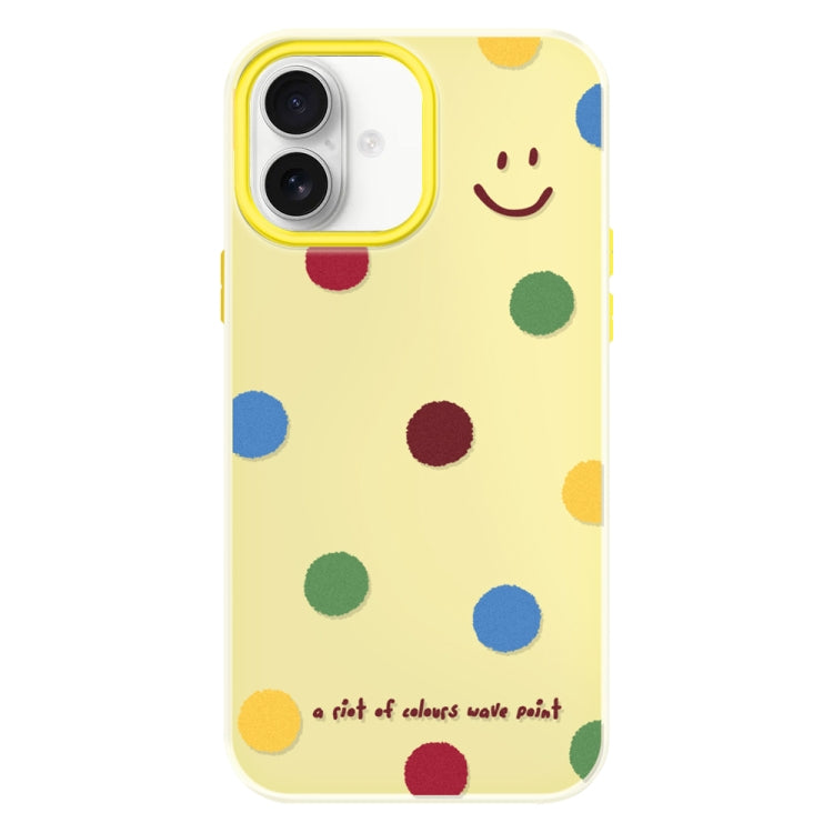 Funda híbrida TPU y Policarbonato para iPhone 16 (Sonrisa de Lunares en Amarillo)