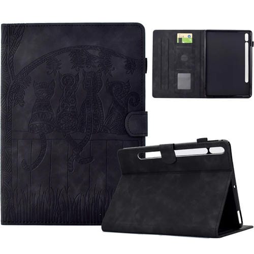 Funda Inteligente de Cuero Samsung Galaxy Tab S8/S7 con Relieve de Gatos (Negra)