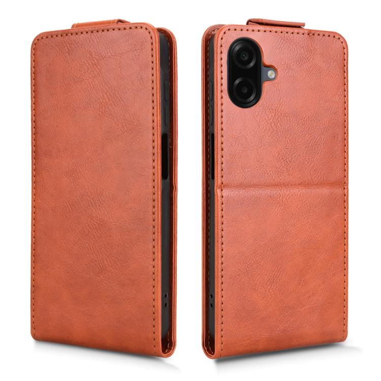 Funda magnética de cuero con tapa vertical y hebilla para Samsung Galaxy A07 4G (marrón)
