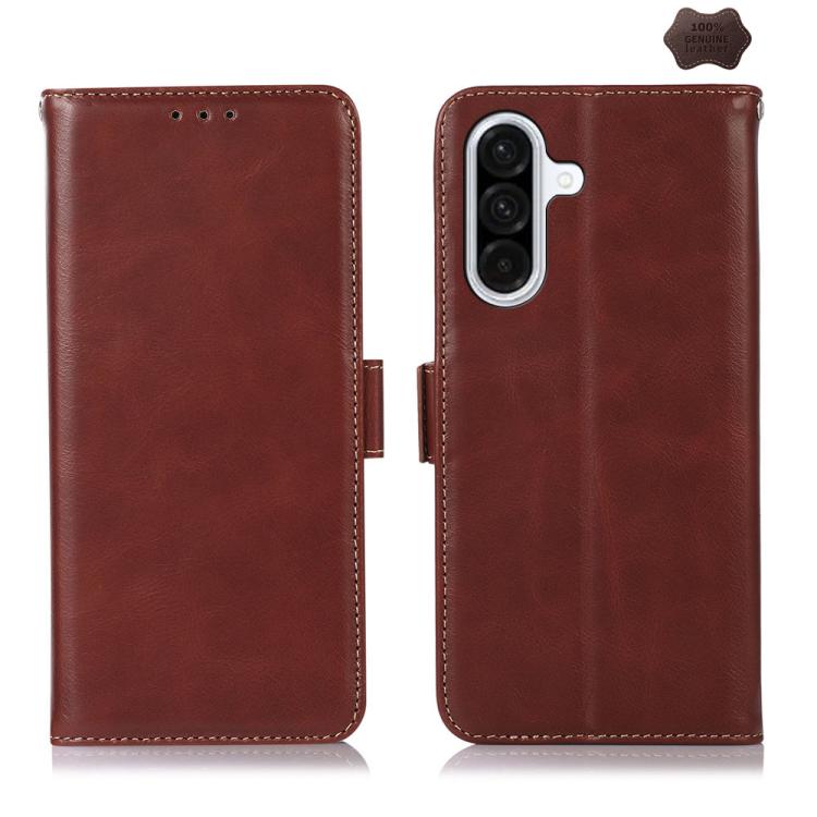 Funda magnética de cuero genuino con textura Crazy Horse y RFID para Samsung Galaxy A17 5G (marrón)