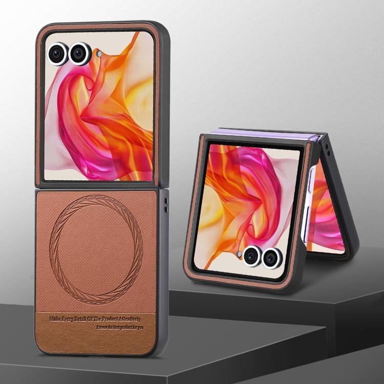 Funda Magnética Piel de Sarga para Motorola Razr 40 Ultra (Marrón)