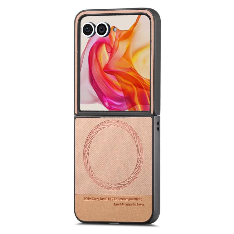Funda Magnética de Piel y Sarga para Motorola Razr 40 (Caqui)