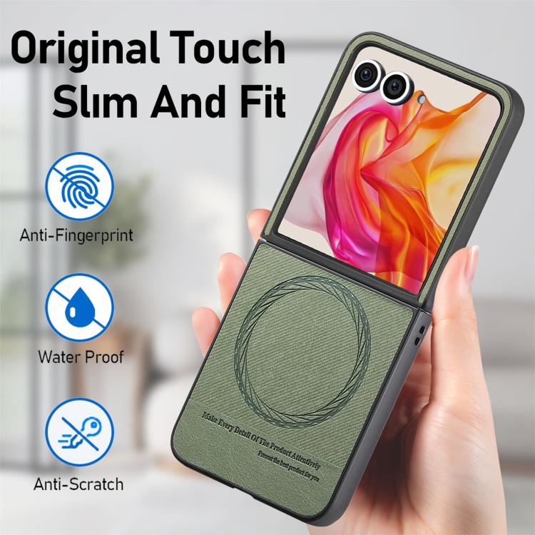 Funda Magnética de Piel y Sarga para Motorola Razr 40 (Verde)