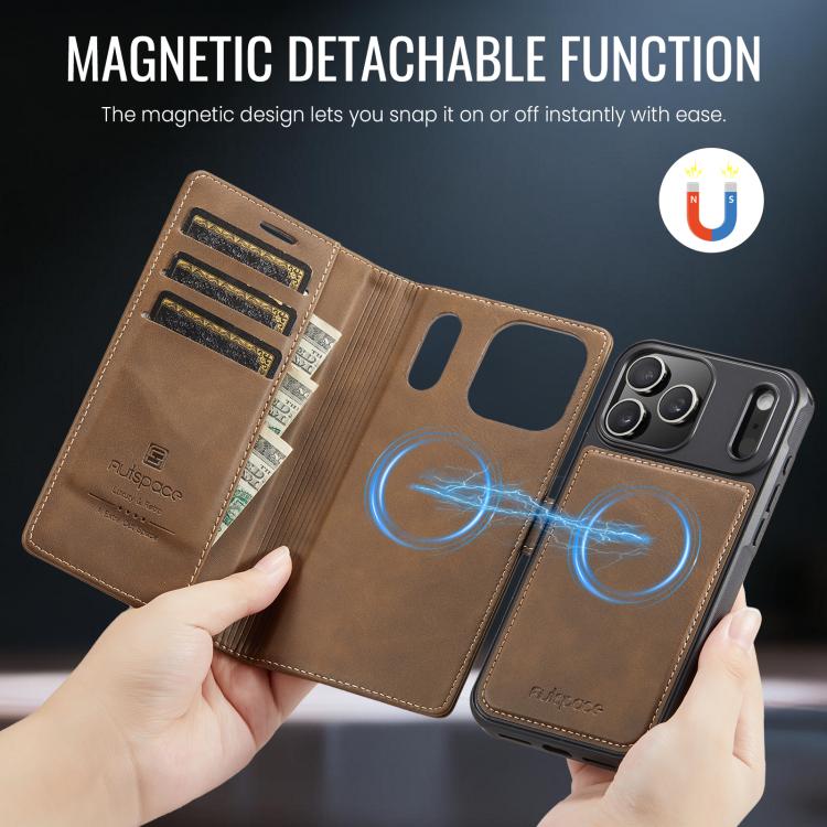 Funda magnética MagSafe AutSpace A05 2 en 1 con textura de piel de becerro retro para iPhone 17 Pro (marrón)