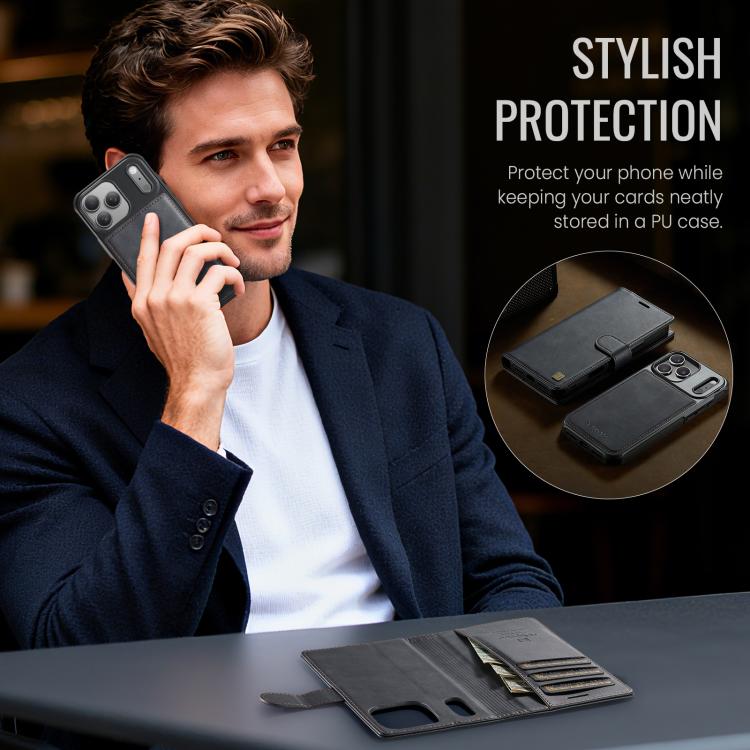 Funda magnética MagSafe AutSpace A05 2 en 1 con textura de piel de becerro retro para iPhone 17 Pro (negra)