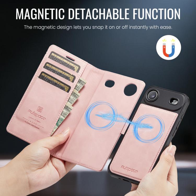 Funda magnética MagSafe AutSpace A05 2 en 1 con textura de piel de becerro retro para iPhone Air (rosa)