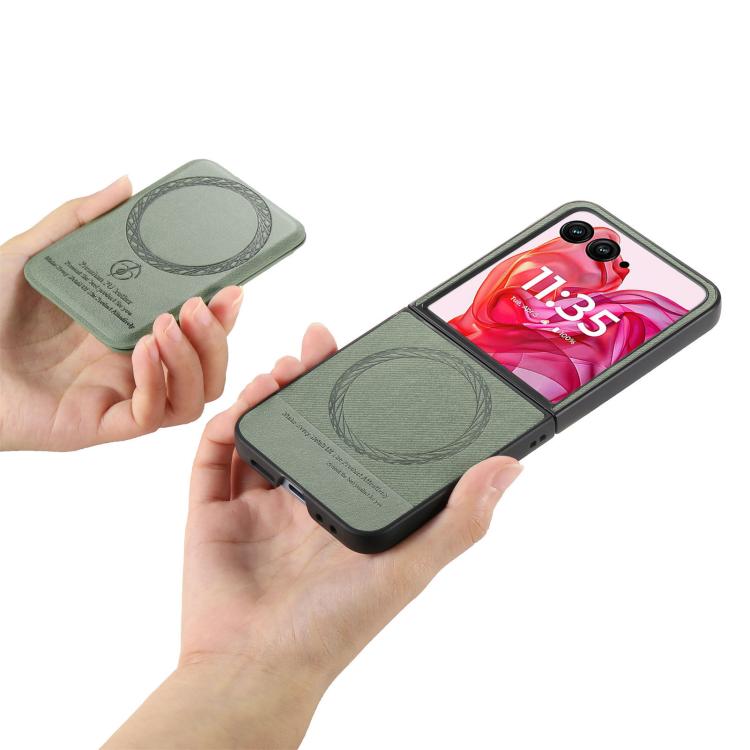 Funda Magnética Motorola Razr 40 Ultra de Tela Sarga y Cuero con Tarjetero (Verde)