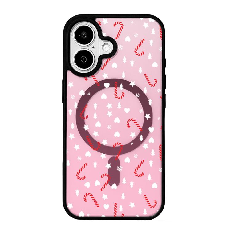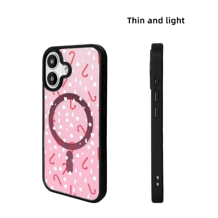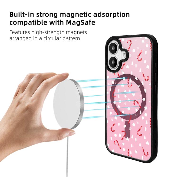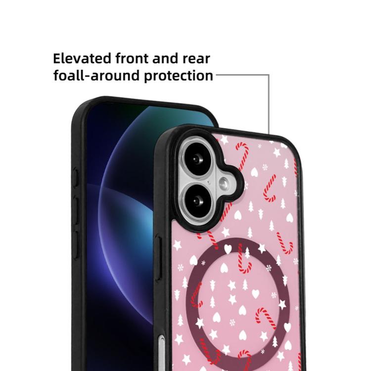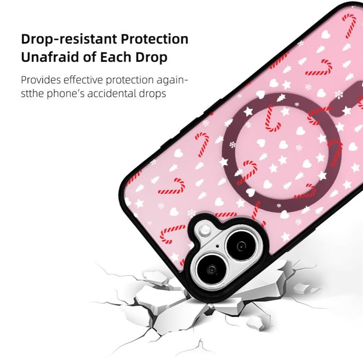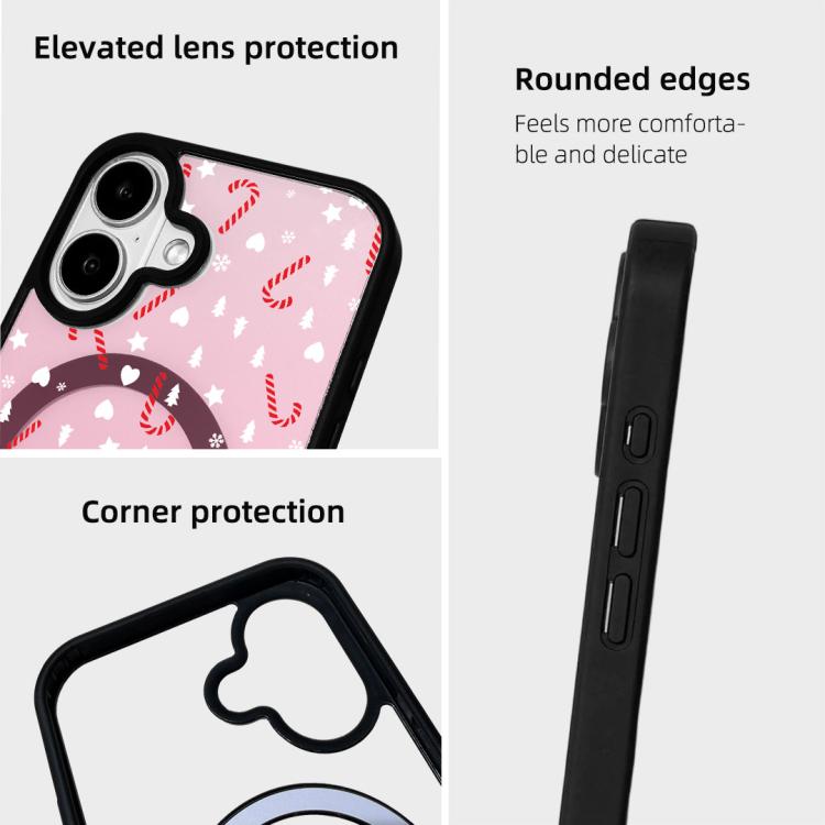 Funda magnética resistente con borde negro pintado para iPhone 17 de la serie navideña (rosa dulce semitransparente).