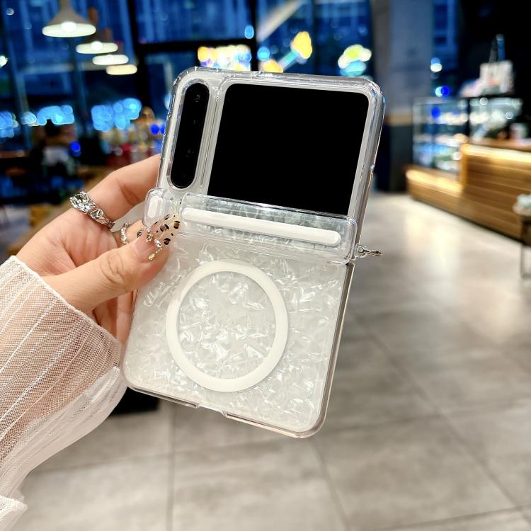Funda MagSafe con textura perlada y hebilla lateral para Huawei Pura X (beige)