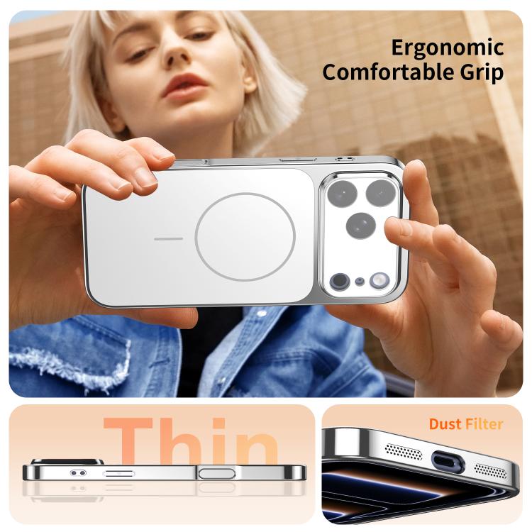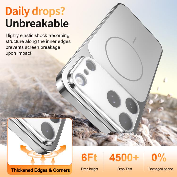 Funda MagSafe con ventana grande y revestimiento de cristal Corning para iPhone 17 Pro Max (plateada)