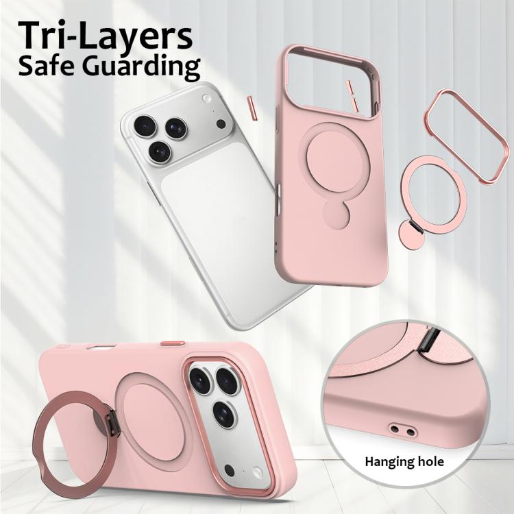Funda MagSafe híbrida de TPU y PC para iPhone 17 Pro Max Gen1.5 con soporte de anillo pivotante (rosa)