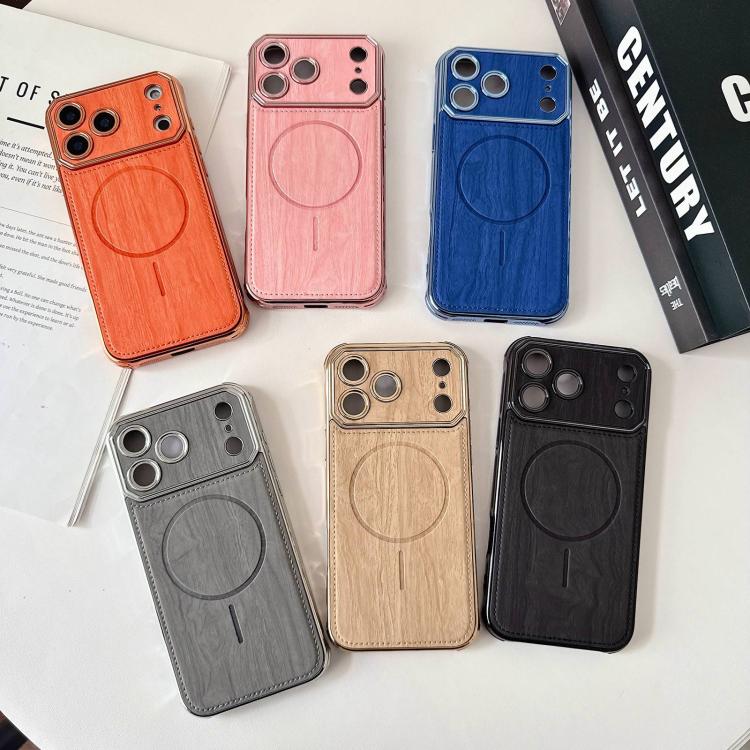Funda MagSafe para iPhone 17 Pro Max con ventana grande de TPU galvanizado con textura de madera y película para lente (rosa)