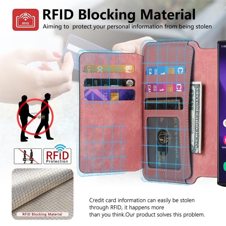 Funda Neo MagSafe RFID antirrobo con cremallera para Samsung Galaxy S24 Ultra 5G, estilo retro, de cuero (rosa)
