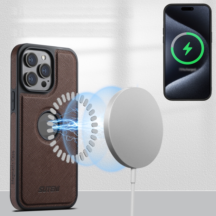 Funda para iPhone 12 Pro Max Suteni M2 Parte Trasera Tarjeta Vertical Magsafe (Marrón)