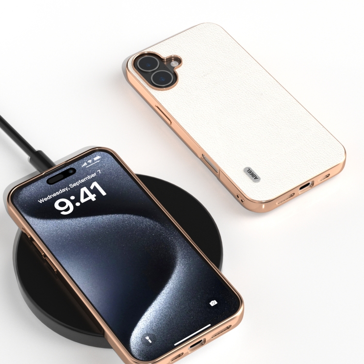 Funda para iPhone 16 Abeel Piel Auténtica Marco Galvanizado Diseño Ondulado (Gris)