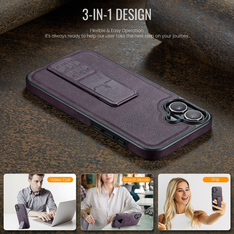 Funda para iPhone 16 Fierre Shann Soporte Trasero Cuero de Vaca con Cera de Aceite (Morado)
