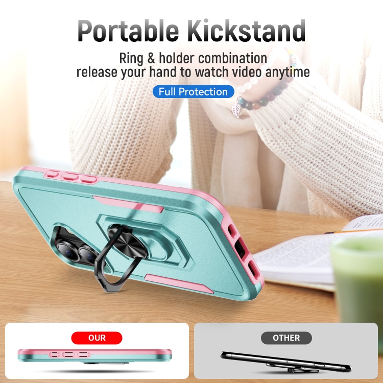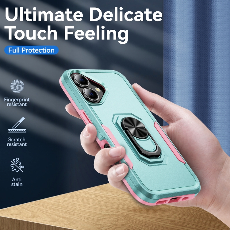 Funda para iPhone 16 Pioneer Armor Policarbonato Resistente y TPU con Soporte (Verde y Rosa)