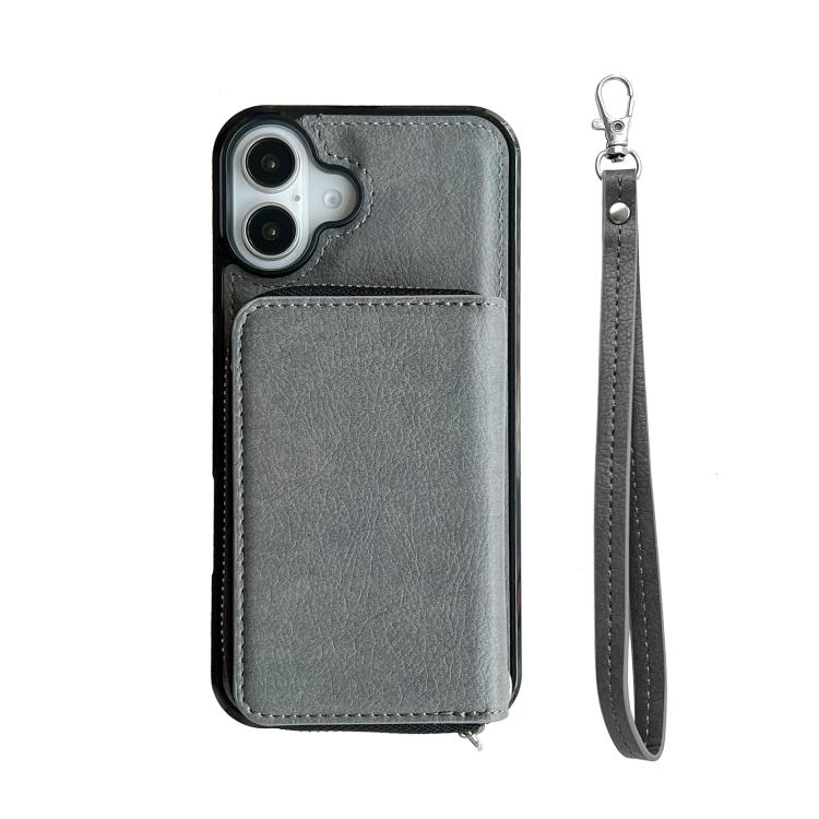 Funda para iPhone 17, color liso, con cremallera, 11 ranuras para tarjetas y cordón (gris)