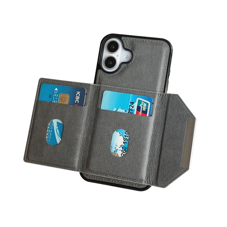 Funda para iPhone 17 con hebilla metálica de color liso y ranuras para tarjetas (gris)