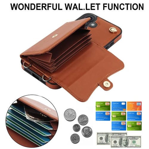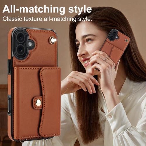 Funda para iPhone 17 con ranura para tarjeta RFID y cordón largo (marrón)