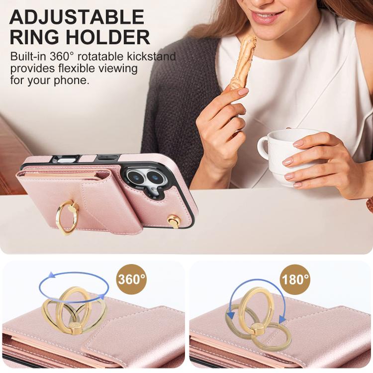 Funda para iPhone 17 con ranura para tarjeta RFID y soporte de anillo (oro rosa)