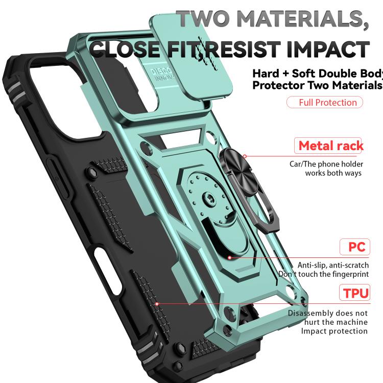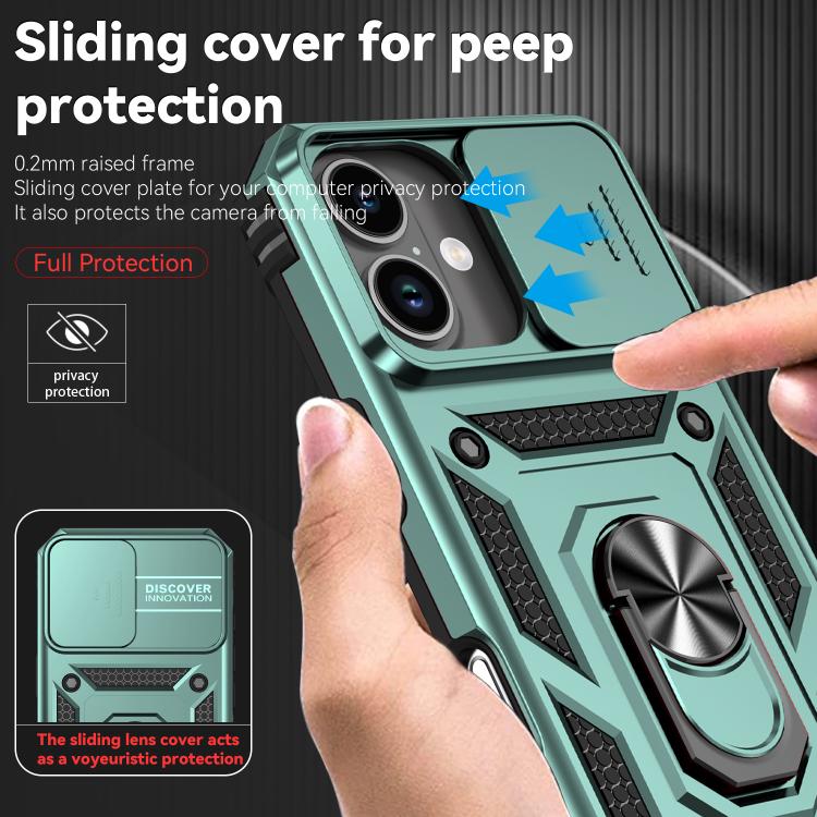 Funda para iPhone 17 con soporte deslizante Camshield (Verde oscuro)