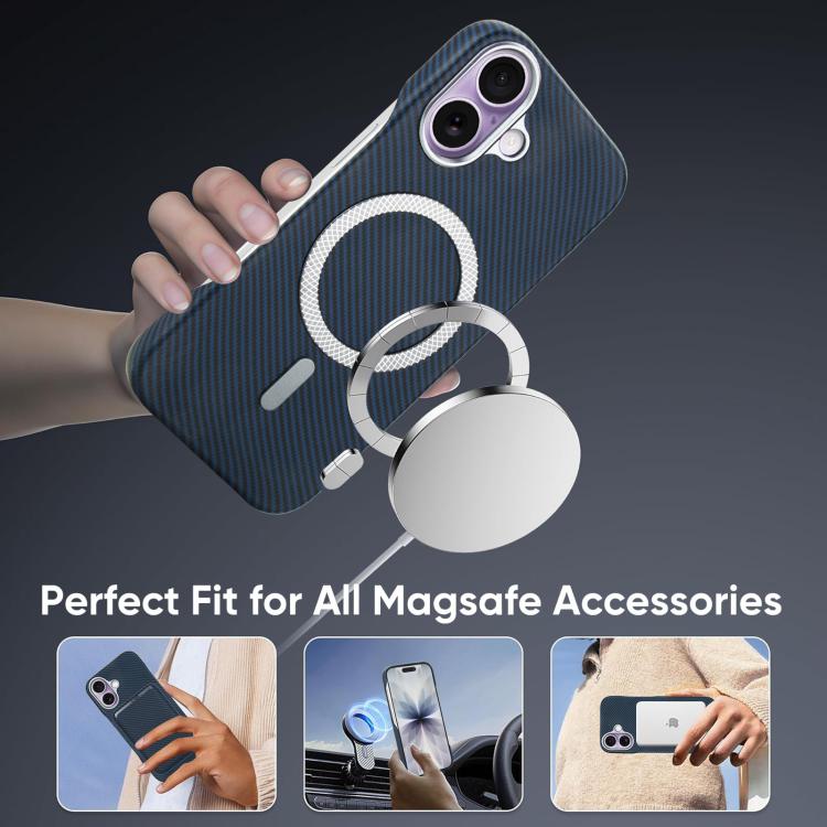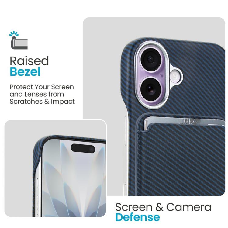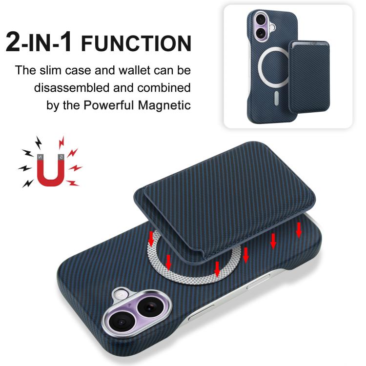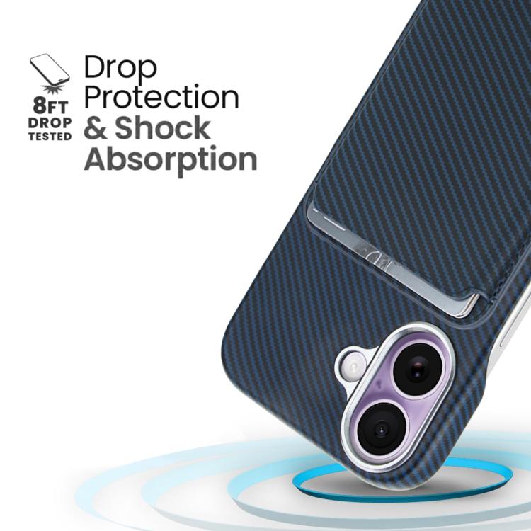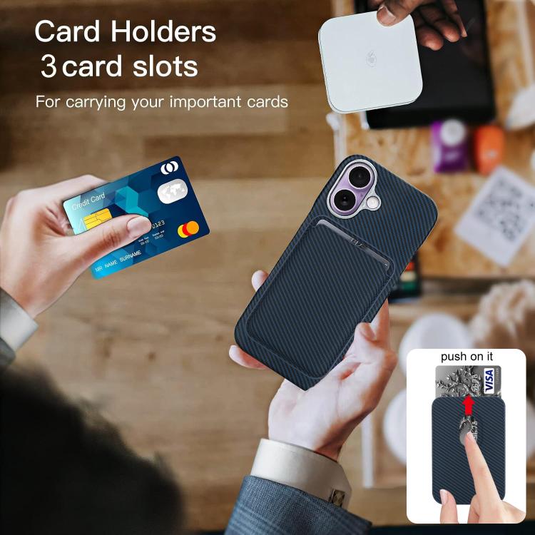 Funda para iPhone 17 con tarjetero magnético MagSafe de fibra de carbono (azul)