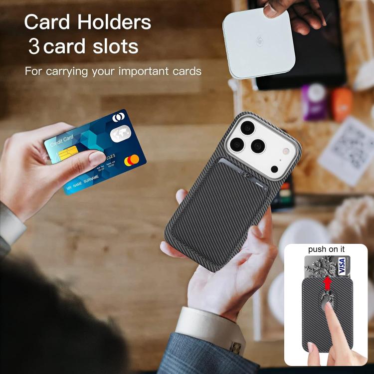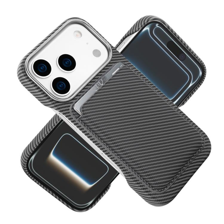 Funda para iPhone 17 Pro con tarjetero magnético MagSafe de fibra de carbono (Gris)