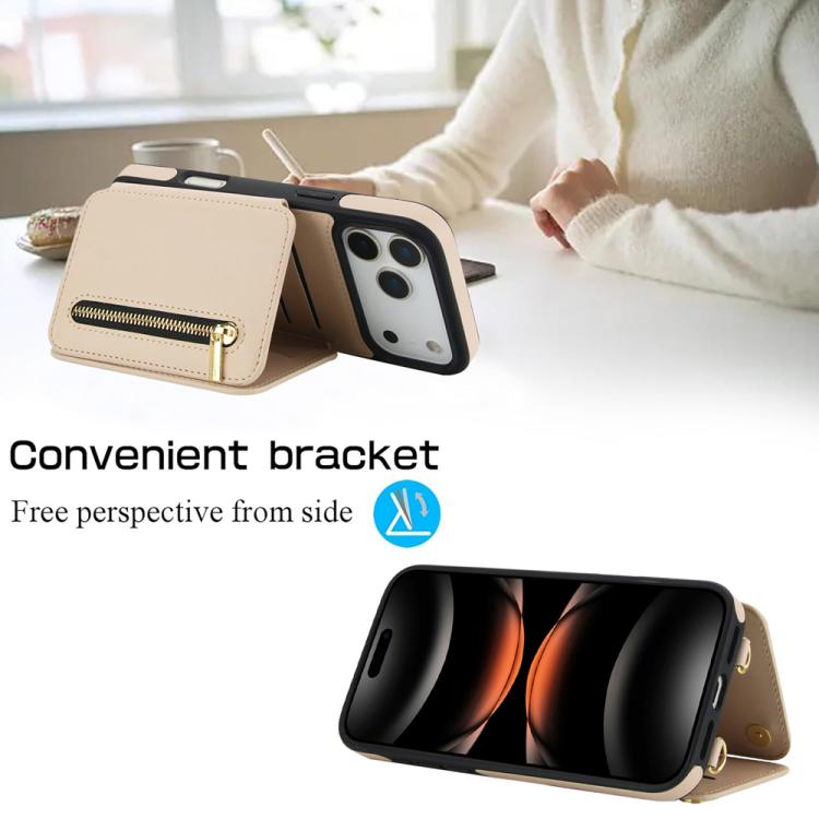 Funda para iPhone 17 Pro YM006 con cremallera y doble cordón (albaricoque)