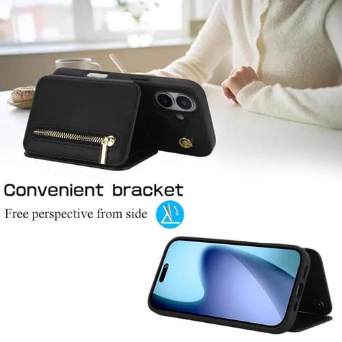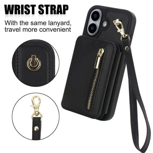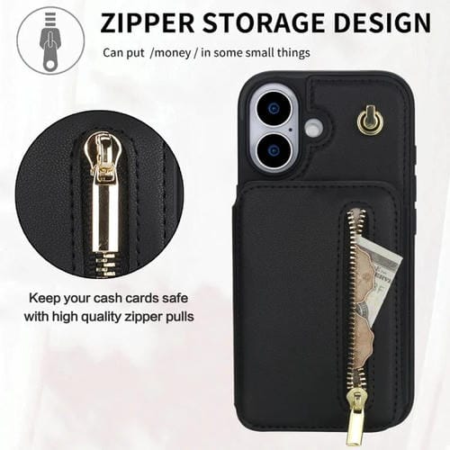 Funda para iPhone 17 YM006 con cremallera y doble cordón (negra)
