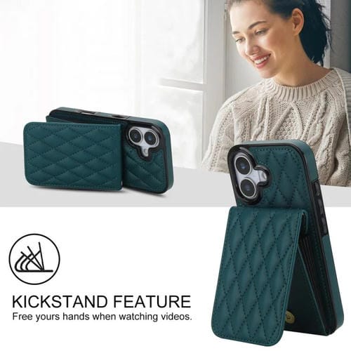 Funda para iPhone 17 YM015 con diseño de rombos y RFID (verde)