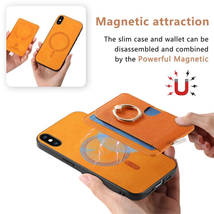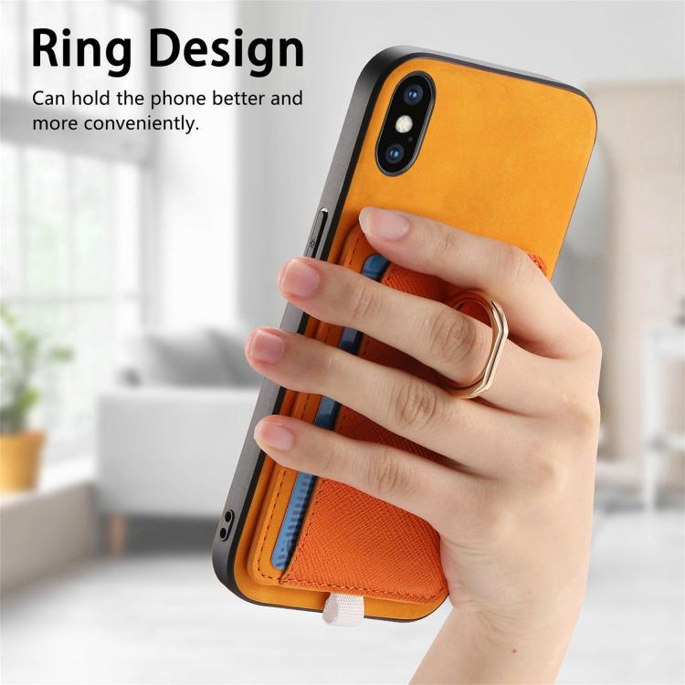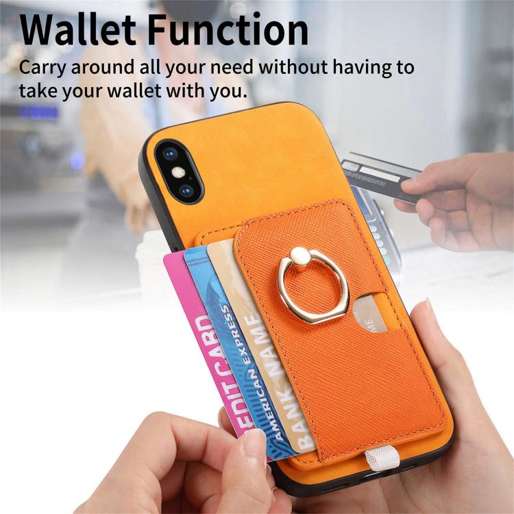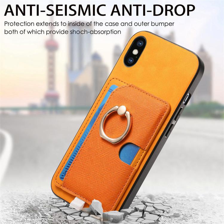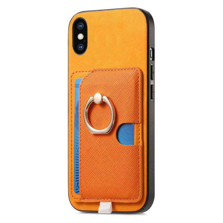 Funda para iPhone Xs Max Cuero Diseño Retro Cruz Ranuras para Tarjetas Anillo Lateral (Amarillo)