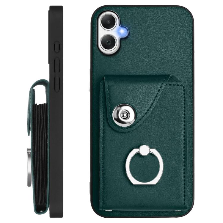 Funda para Samsung Galaxy A06 4G con tarjetero, anilla y cordón largo (verde)