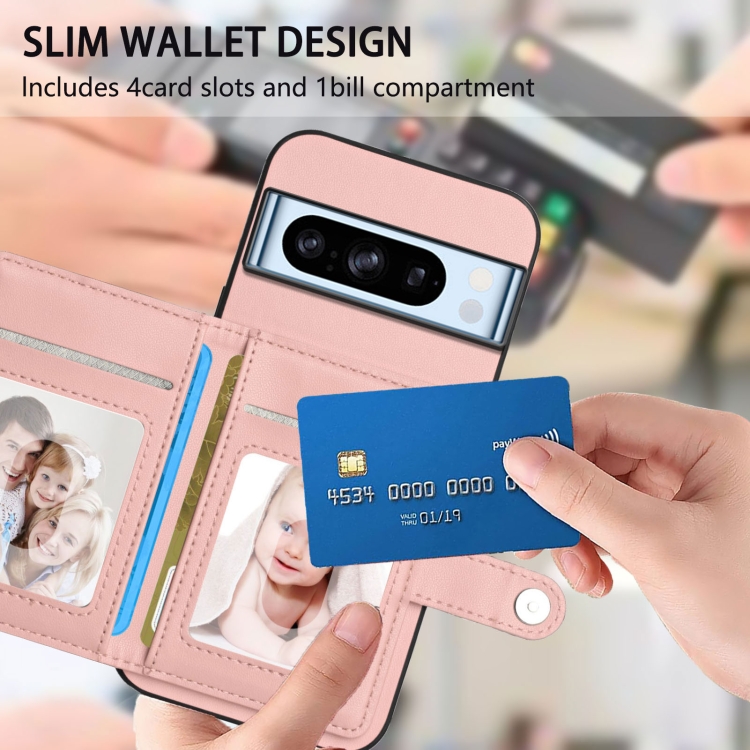 Funda Antirrobo para Google Pixel 8 Pro con Botón y Tarjeta Rfid (Rosa)