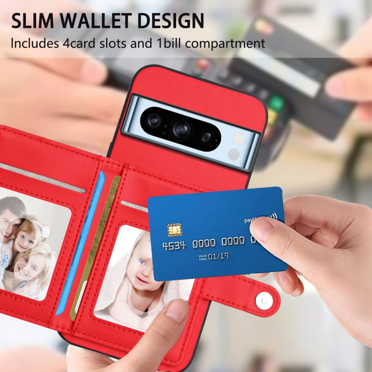 Funda Antirrobo para Google Pixel 8 Pro con Botón y Tarjetero RFID (Roja)