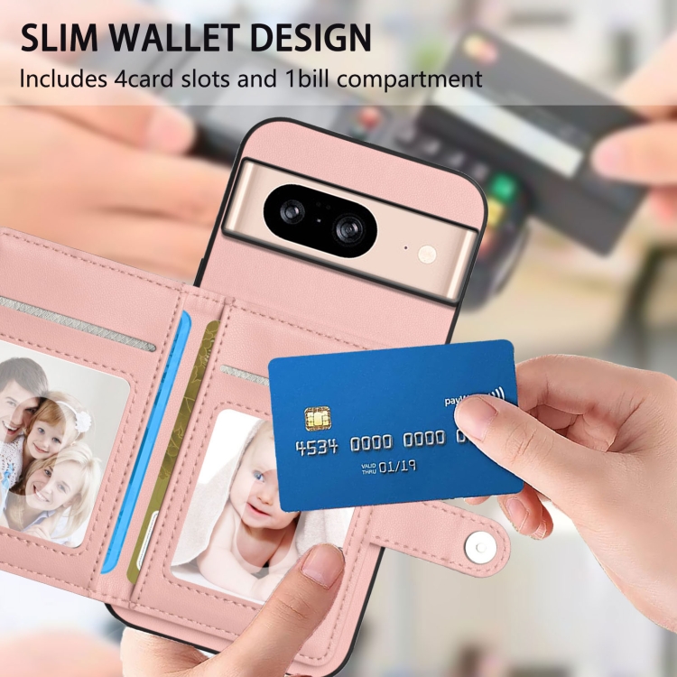 Funda Antirrobo para Google Pixel 8 con Botón y Tarjetero RFID (Rosa)