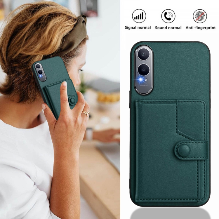 Funda para Teléfono OnePlus Nord CE4 Lite 5G Antirrobo con Botón y Tarjetero RFID (Verde)