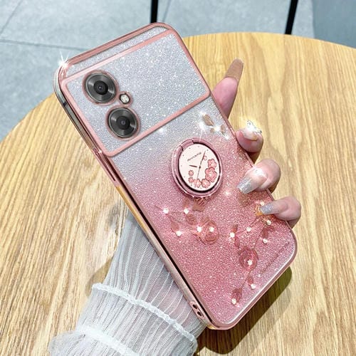 Funda para Teléfono con Anillo de Flores Inmortal con Purpurina Degradada para Xiaomi Poco M5 5G, Todo Incluido (Rosa)