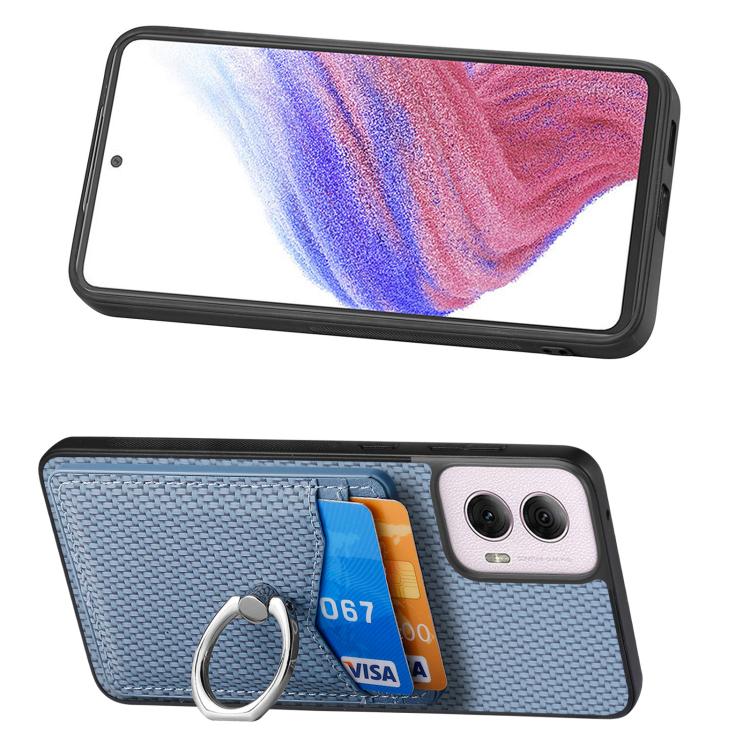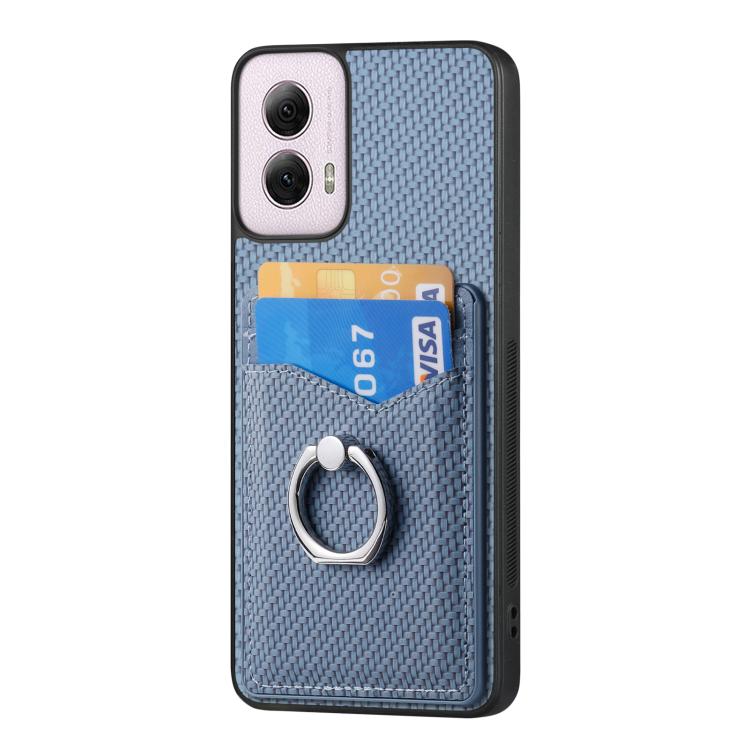 Funda para Teléfono Motorola Moto G Power 5G 2024 con Anillo, Billetera y Tarjetero de Fibra de Carbono (Azul)