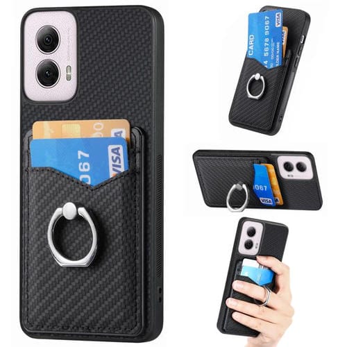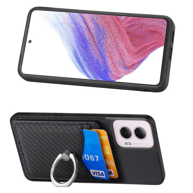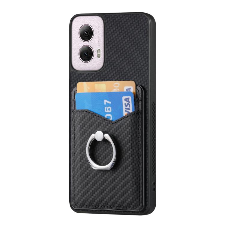 Funda con Anillo Tipo Billetera y Tarjetero Fibra de Carbono para Motorola Moto G Power 5G (2024) (Negra)