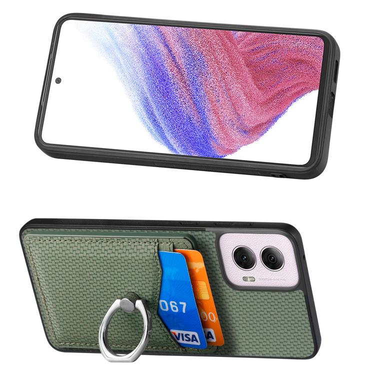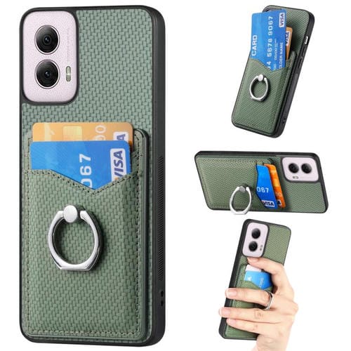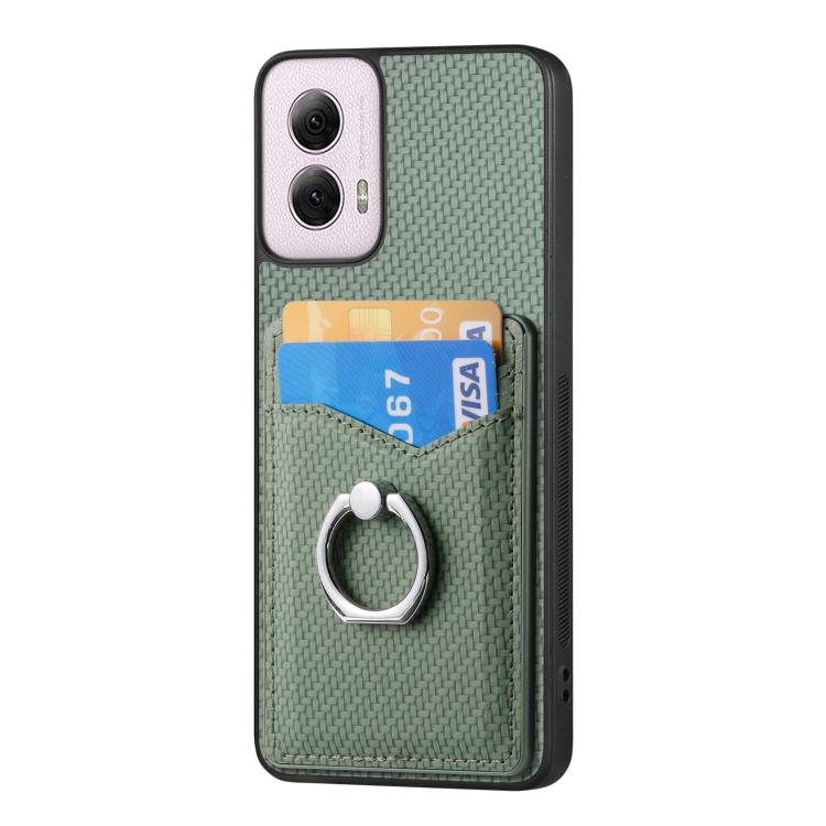 Funda para Teléfono Motorola Moto G Power 5G 2024 con Anillo Tipo Billetera y Tarjetero de Fibra de Carbono (Verde)