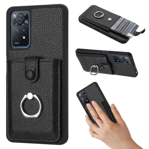 Funda para Teléfono con Anillo y Diseño de Textura de Lichi para Redmi Note 11 Pro 4G (Negra)