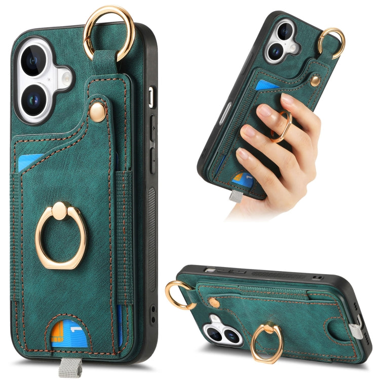 Funda para Teléfono Apple iPhone 16 con Anillo Tarjetero Asa Estilo Retro (Verde)