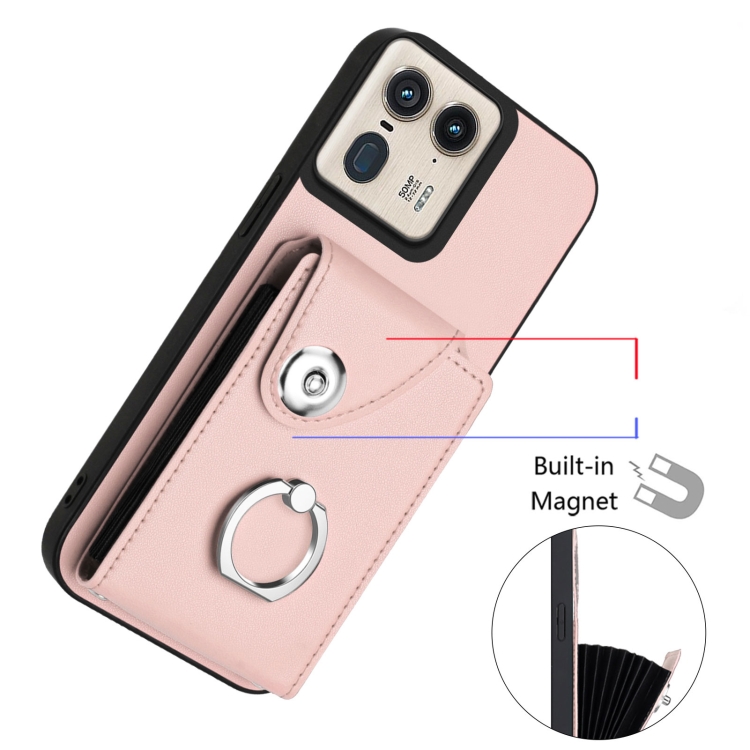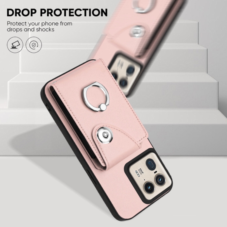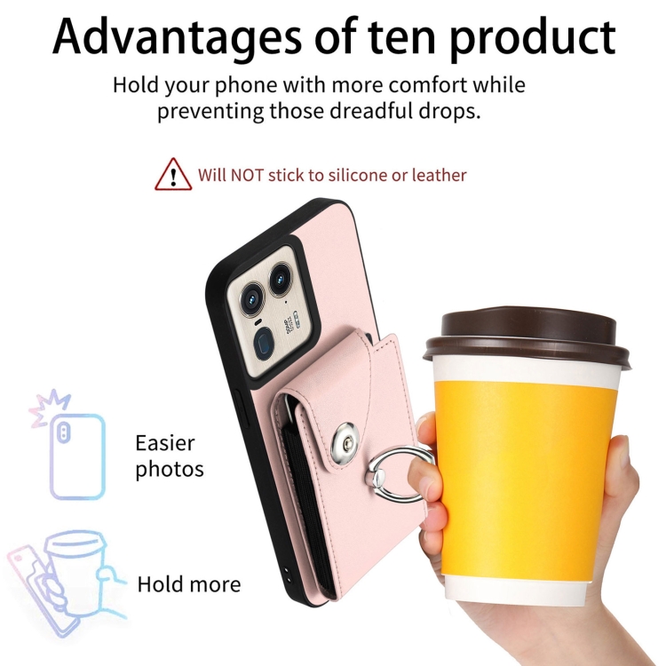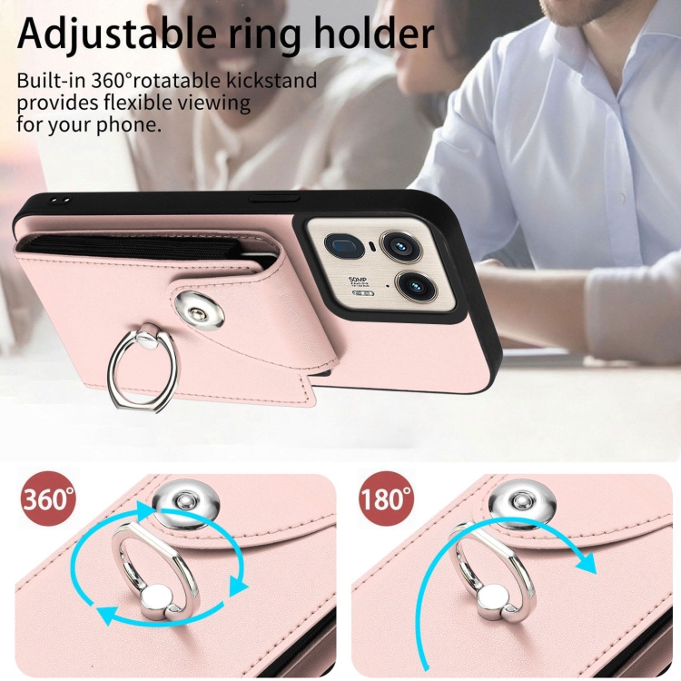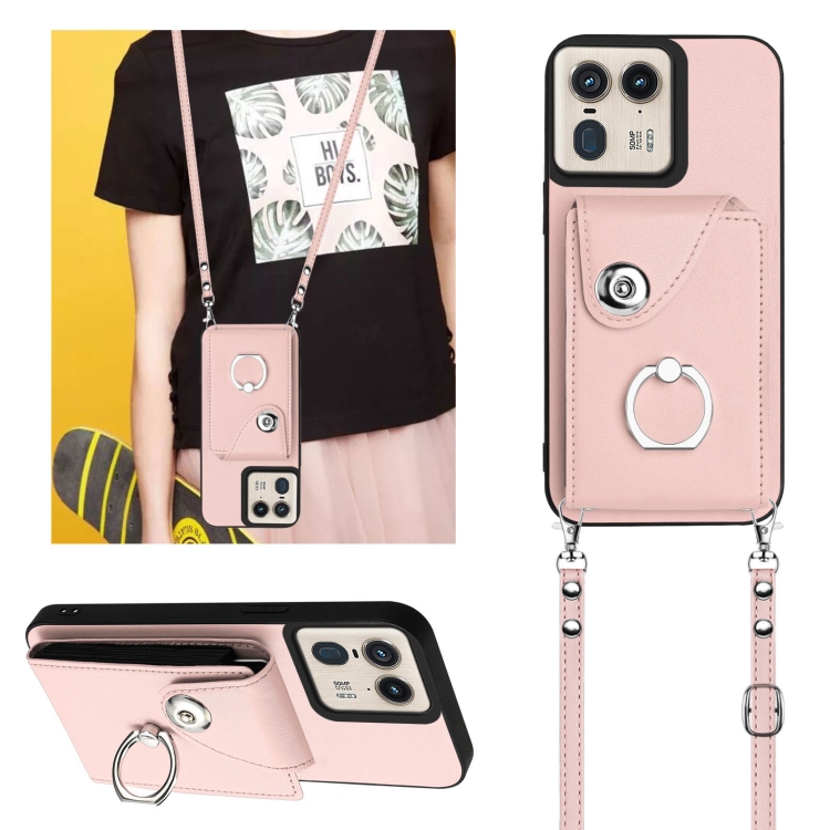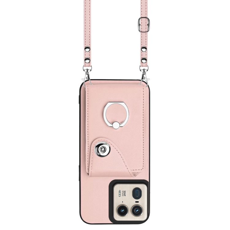 Funda para Teléfono Motorola Edge 50 Ultra Versión UE con Aro, Tarjetero y Cordón Largo (Rosa)