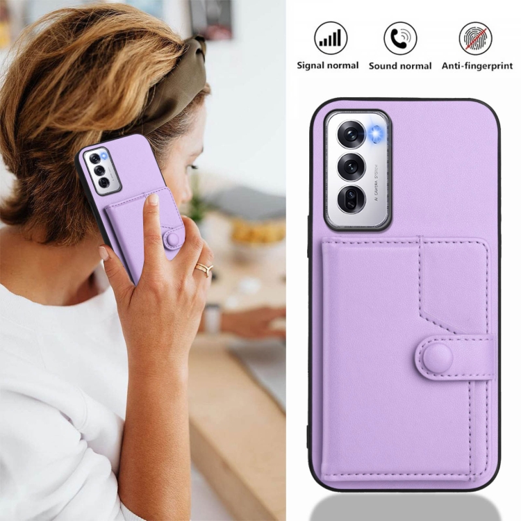 Funda para Teléfono con Botón y Tarjeta Rfid Antirrobo para Oppo Reno12 Global (Morado)