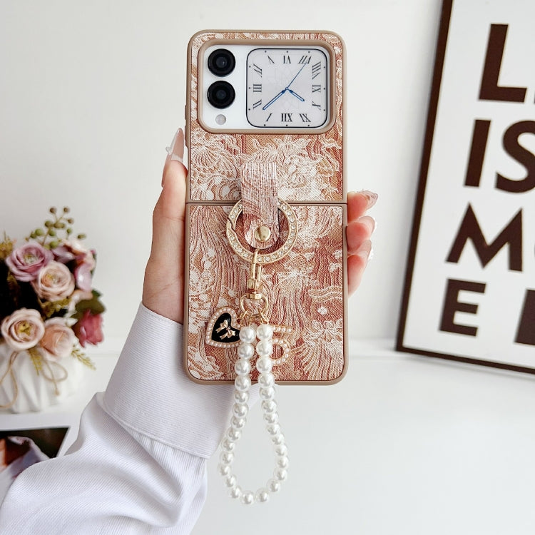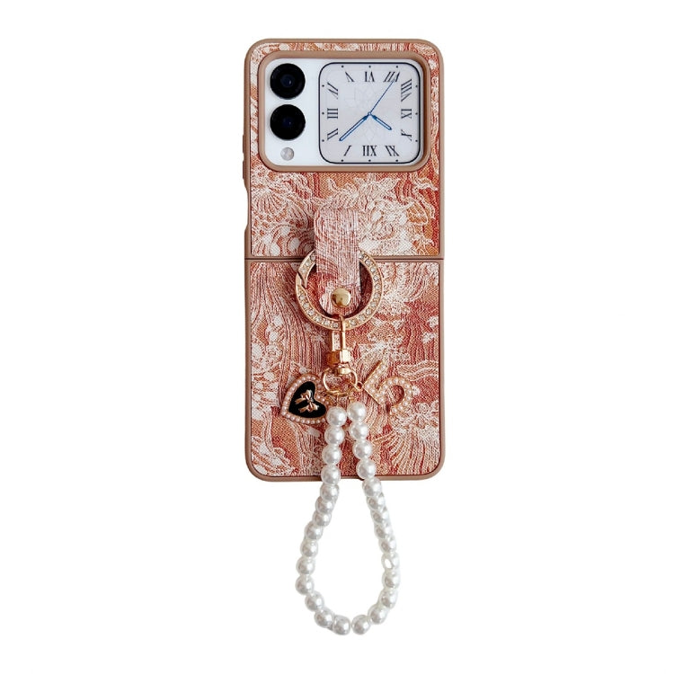 Funda para Teléfono Huawei Nova Flip con Cobertura Total Bordado Cadena y Anillo (Naranja)